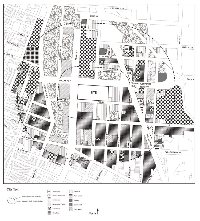 Für die Vorbereitung von Hochbauprojekten in verschiedenen New Yorker Stadtteilen erstellte ich Umweltverträglichkeitsprüfungen. Um Abwägungen für den Einfluss der geplanten Projekte auf das städtische Umfeld zu treffen und potentielle Nutzungskonflikte zu identifizieren, führte ich im Kontext städtischer Planungen umfangreiche Analysen in Bereichen wie Bodennutzung, Demografie, Städtebau, Lärm, Verkehr und sozioökonomische Faktoren durch. Für die Auftraggeber_innen arbeitete ich die Ergebnisse und Empfehlungen in präzisen Texten und informativen Karten und Plänen auf. Geplante Projekte reichten von der Umnutzung von Gewerberäumen und einer Kirche für Wohnzwecke bis zu einem 65-stöckigen Hochhaus mit akademischen, gewerblichen und Wohnnutzungen (City Tech) im Zentrum von Brooklyn.